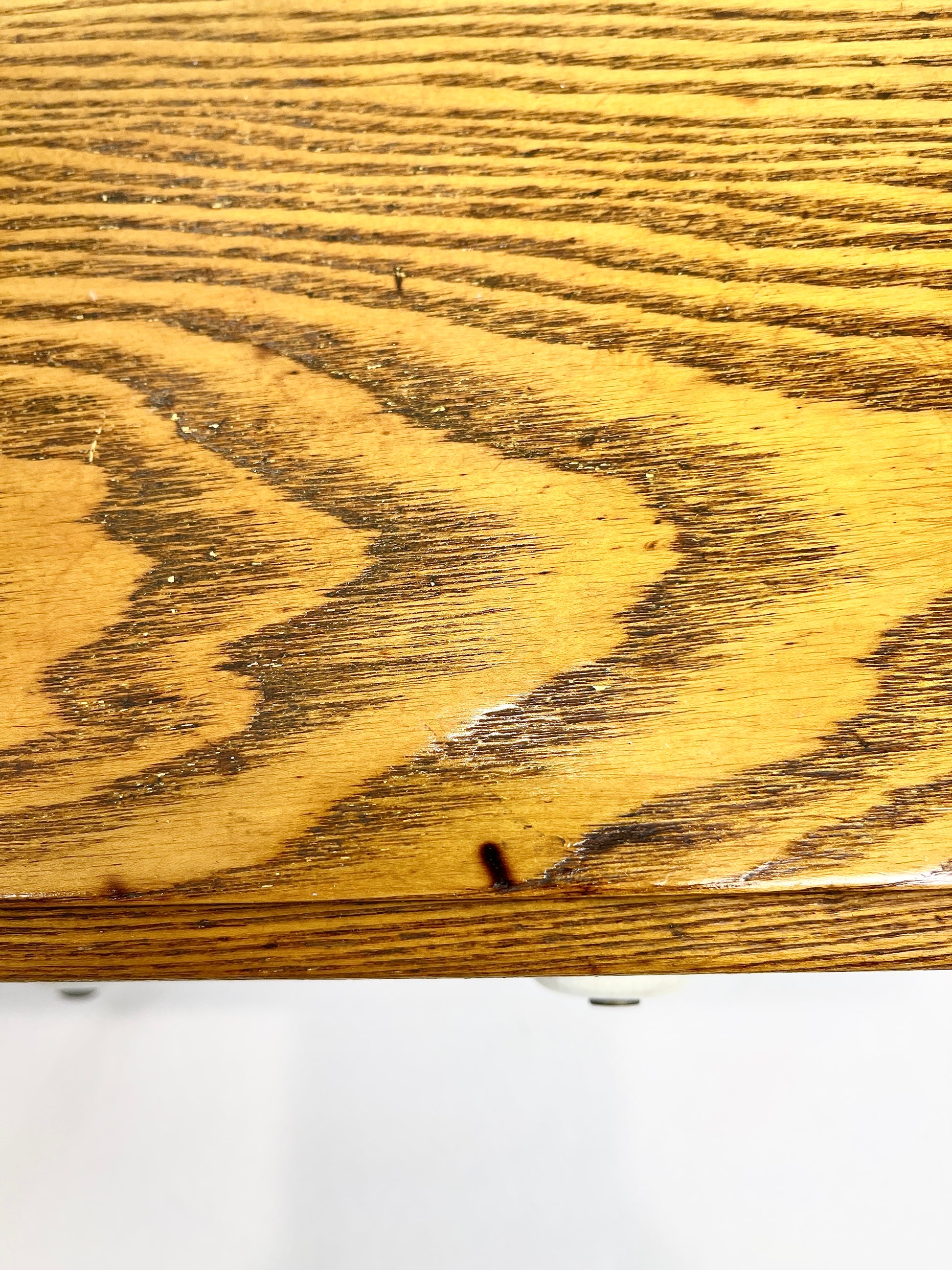 The chest is solid wood, well made and in good, sturdy condition with a heavy weight. There are some imperfections, a small burn mark and some wear, but overall it shows nicely and is in ready to use condition. The drawers open easily and are completely removable.