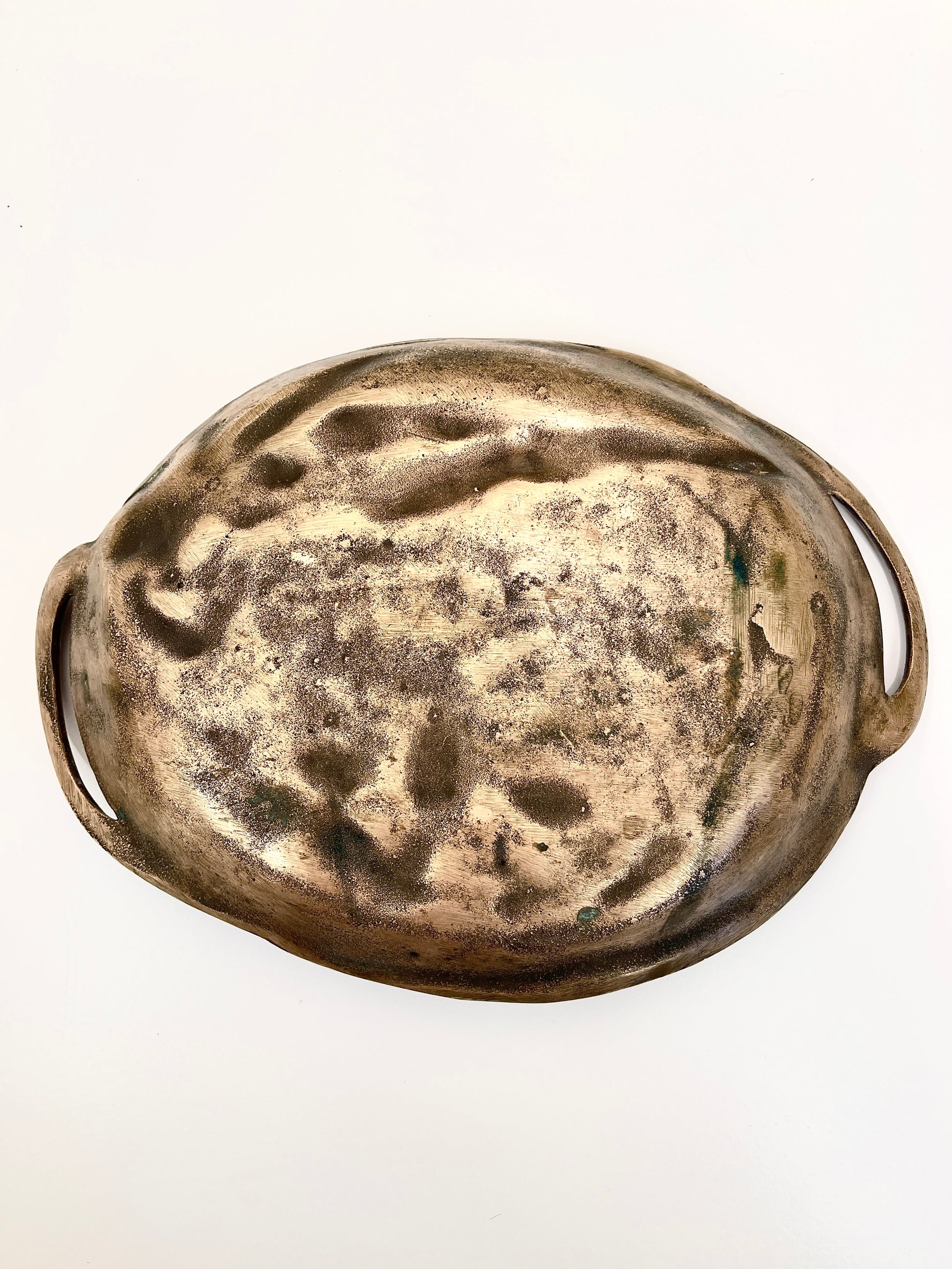 The piece is cast in bronze with warm golden tones, giving it both depth and character. It is in beautiful condition and is very heavy. These trays were originally intended as desk, vanity, or decorative trays and would have been used for calling cards, coins, or jewelry. Today, it makes a beautiful decorative accent to be displayed as an art object or used as intended.