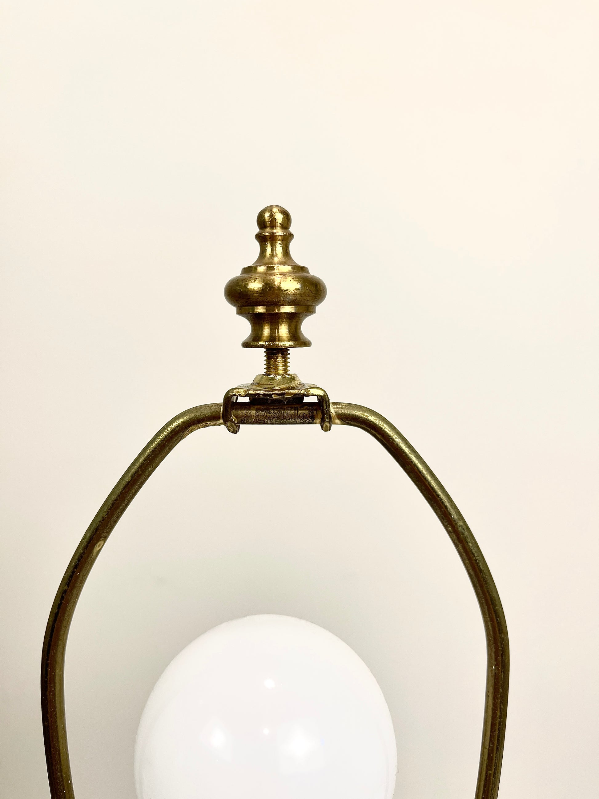 It's a lovely and unique lamp and in working order with a push through switch on the bulb socket. The base and wood are in excellent condition with no detectable chips or cracks. It’s a timeless style and perfect for classic or eclectic décor.