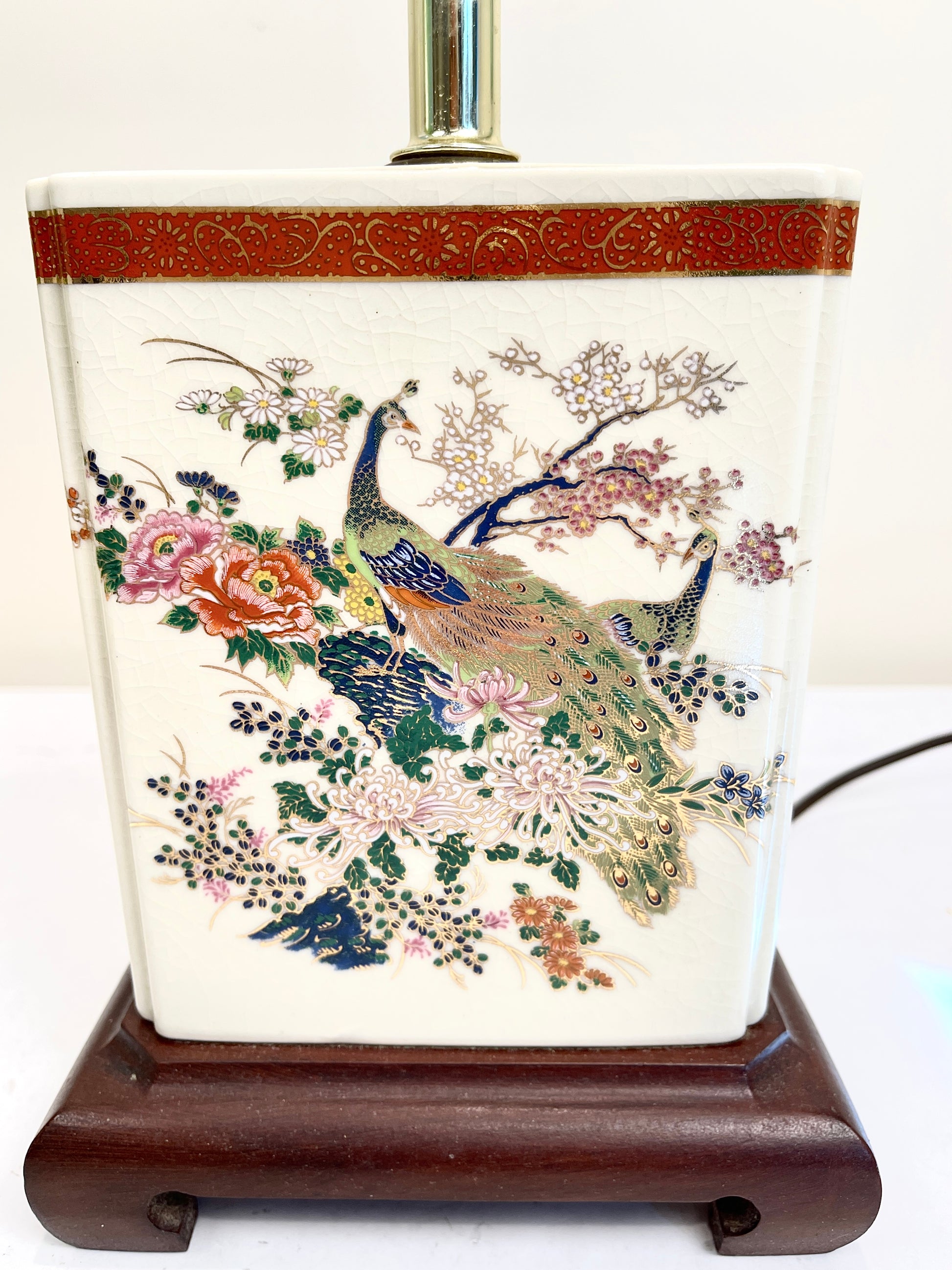 Vintage Peacock and Florals Porcelain Table Lamp with Shade