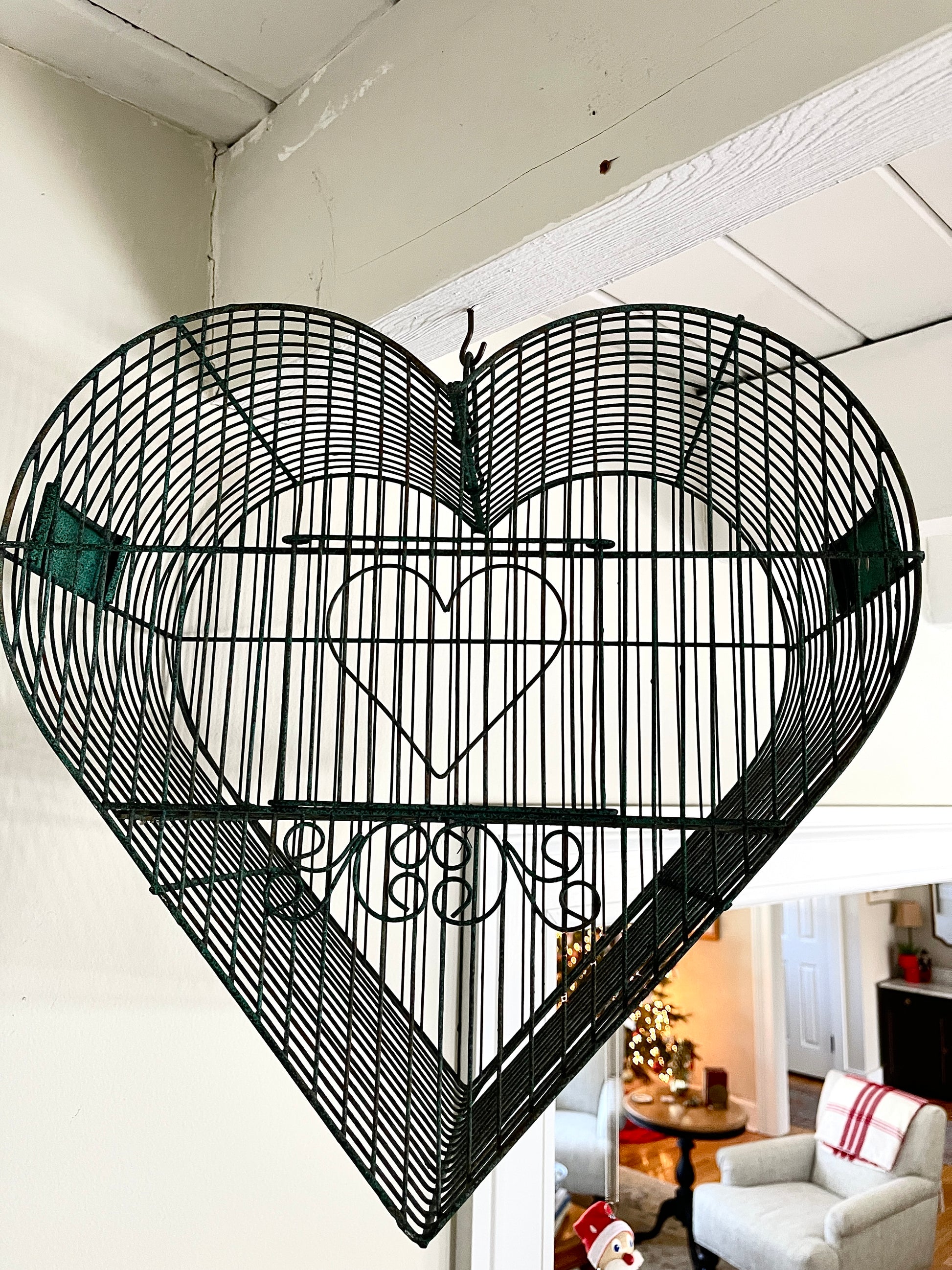 Vintage Heart Birdcage with Hanger: Green Wrought Iron